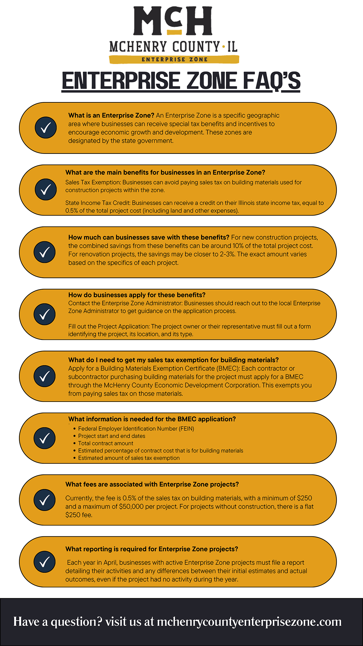 Requirements vary within the MCEZ. To determine whether your project qualifies for zone benefits, please click here. Or contact us for assistance or more information.